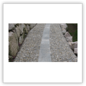 Davide Bosi, realizza viali, vialetti e camminatoi sempre impiegando combinazioni di materiali quali sassi, lastre, beole e porfido.
